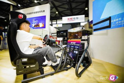 長虹佳華推出的“沉浸式全真動感飛椅過山車”是一款全新的游戲動感座椅,全向3DoF動感結(jié)構(gòu),水平旋轉(zhuǎn)最大速度360度每秒,數(shù)字化技術(shù)完美復(fù)刻世界著名過山車體驗。